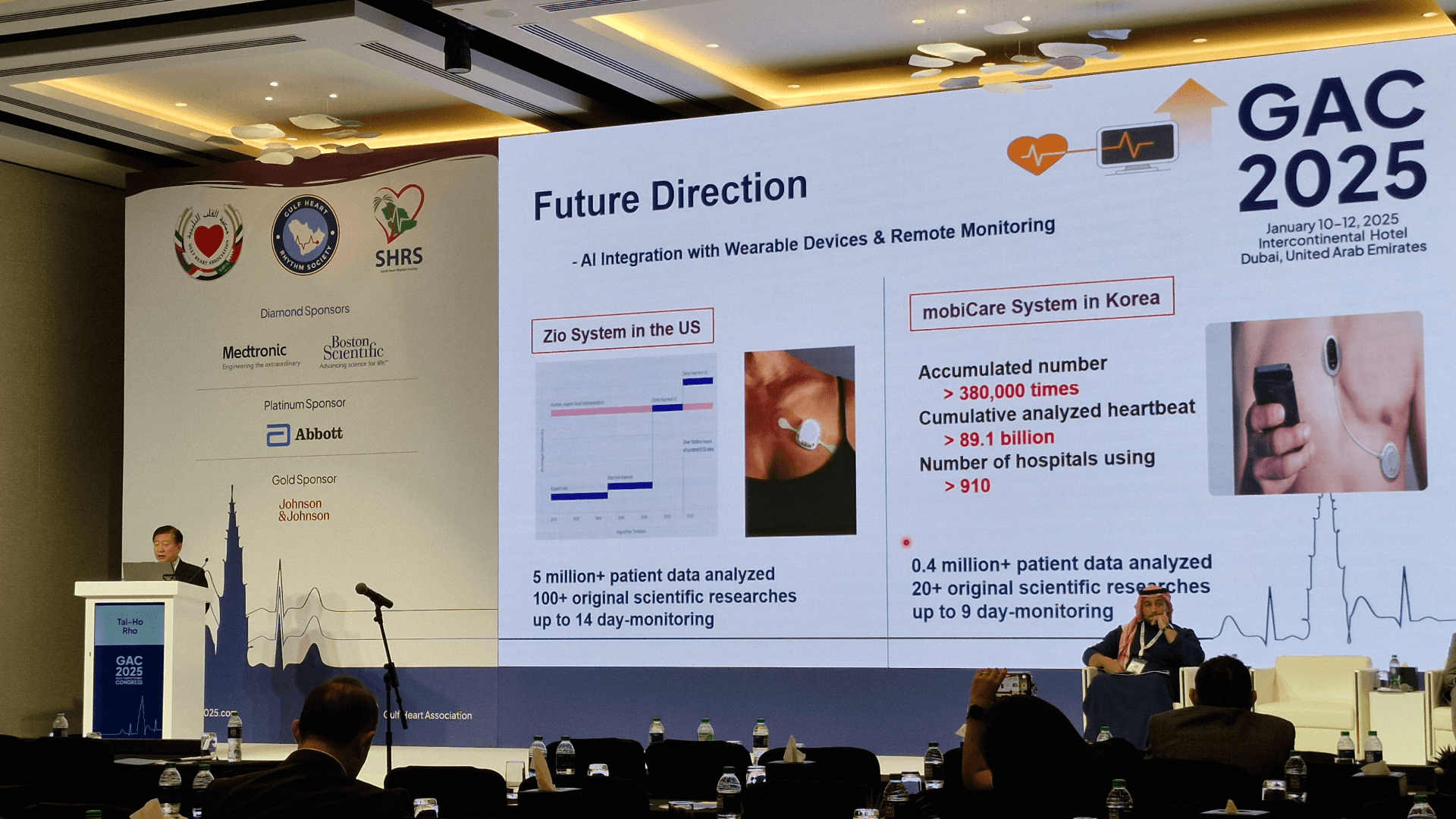mobiCARE™는 GAC 2025의 주요 프로그램 중 하나였던 ‘부정맥 진단의 혁신 기술’ 세션을 통해서 참가자들에게 소개되기도 했습니다. 세션 발표를 맡은 노태호 바오로내과 원장은 mobiCARE™를 실제 의료 현장에 도입한 사례를 공유했는데요. mobiCARE™가 보유한 의료 인공지능 기반 부정맥 진단 특화 기술, 합리적인 구독 서비스 모델 등의 다양한 강점은 학회 참가자들의 큰 호응을 얻었습니다.