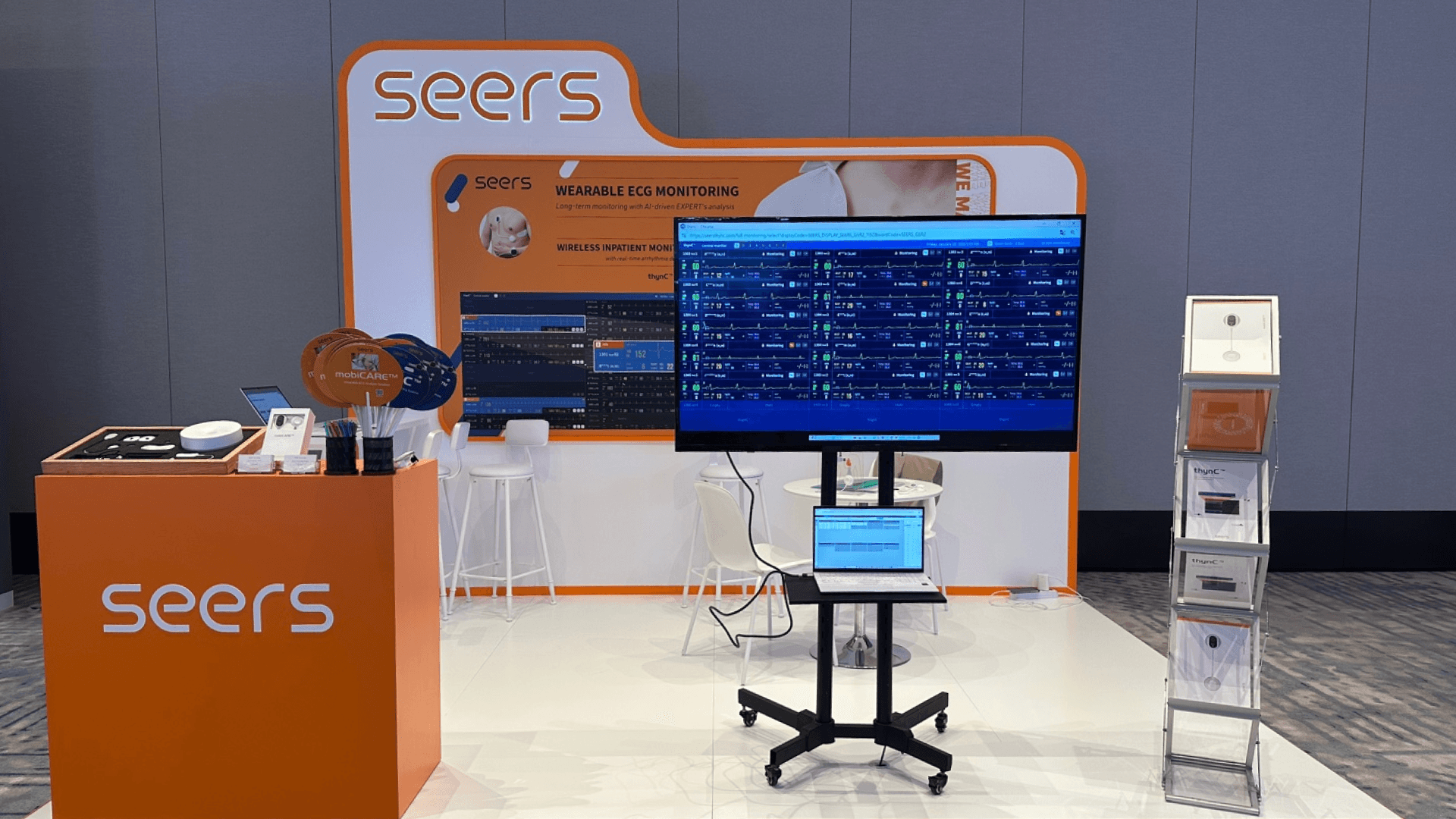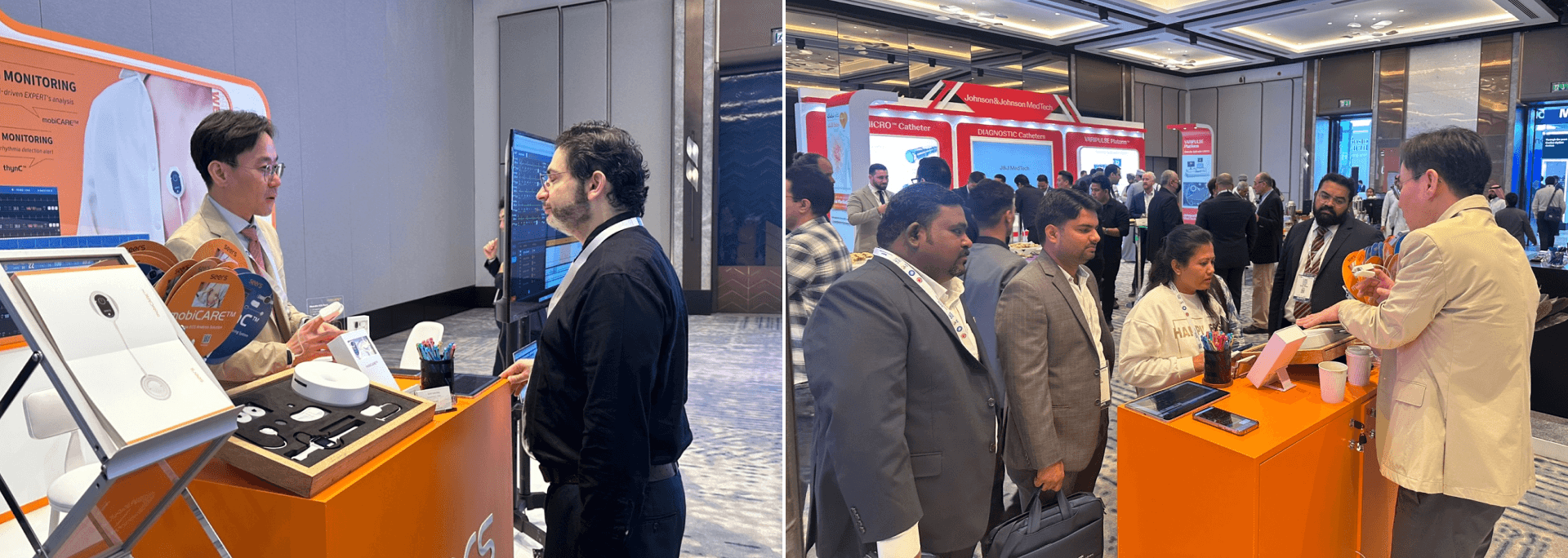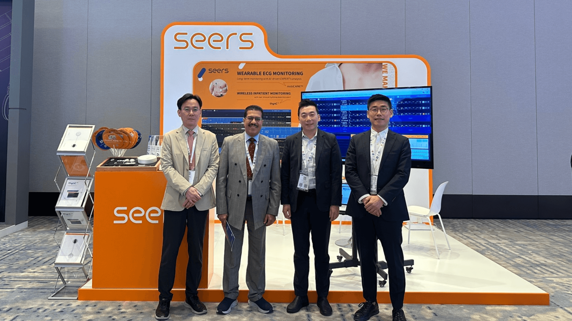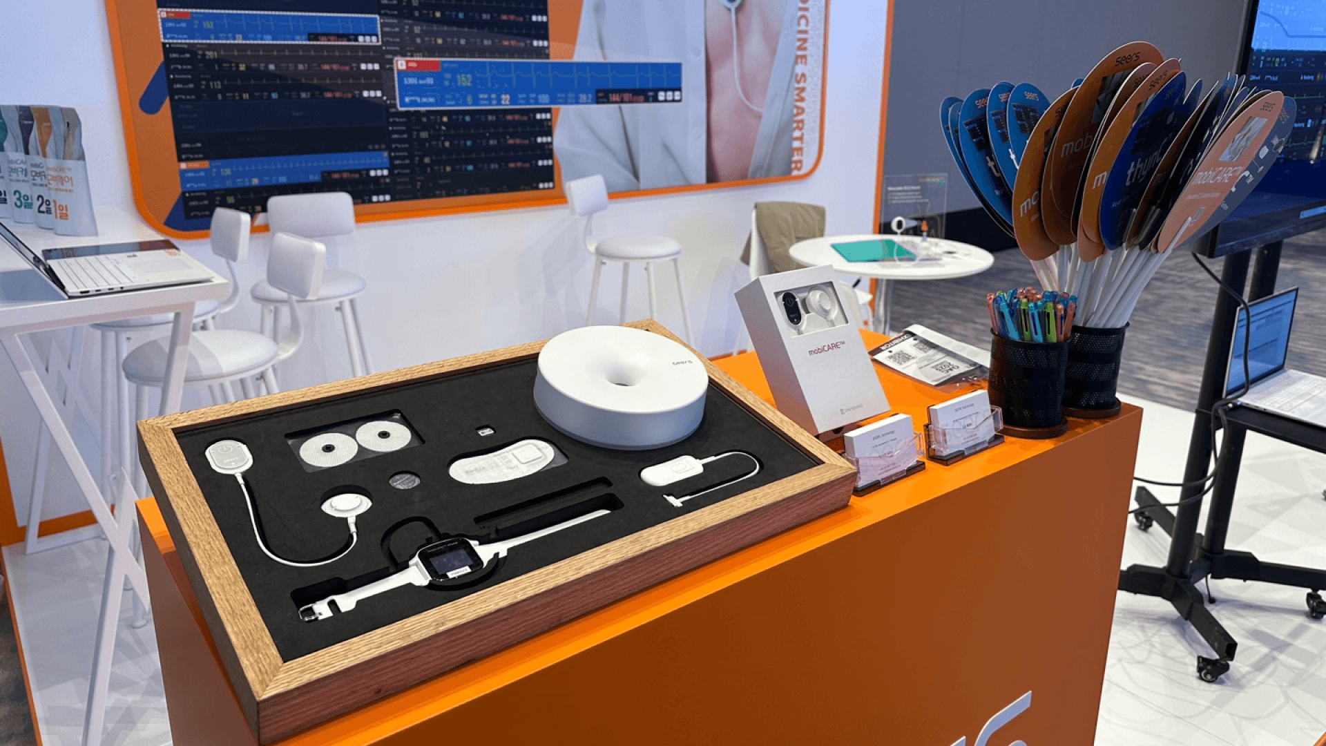 씨어스 부스를 찾은 방문객들은 특히 mobiCARE™의 구성 요소 중 하나인 웨어러블 심전도 패치의 디자인과 기능에 긍정적인 반응을 보였습니다. 기존의 다중 리드 심전도를 대체하는 단일 리드 웨어러블 심전도 패치의 임상적 유효성에 대한 질문도 많았는데요. 이미 국내외 여러 의료기관이 도입해 사용 중인 mobiCARE™ 솔루션은 다양한 임상 연구를 통해 그 유효성을 입증해 왔죠. 씨어스 팀은 방문객들의 궁금증을 상세히 해소해 드리며, 현지 전문가들의 신뢰를 얻었답니다.