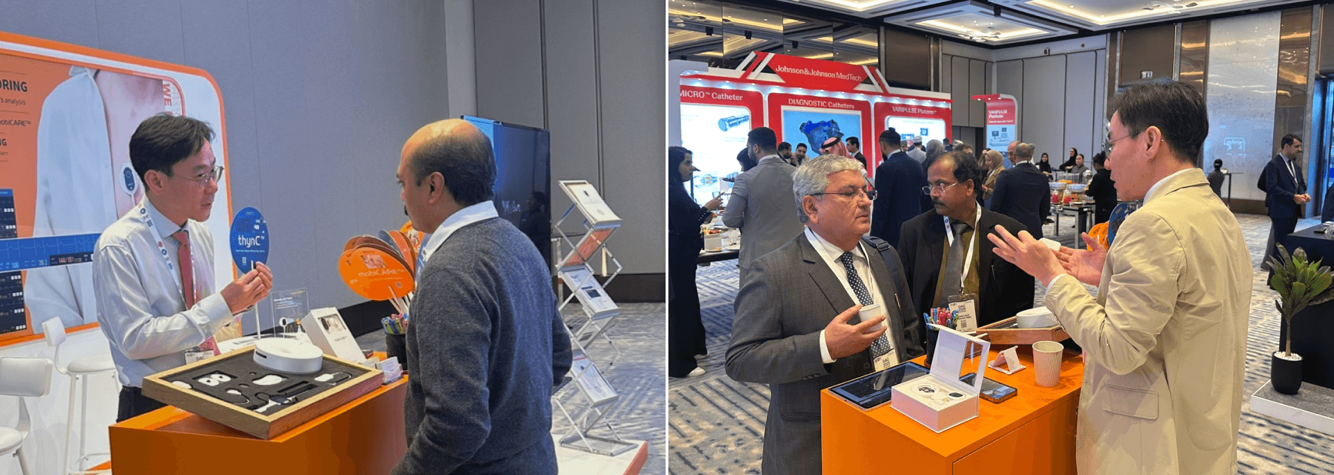 씨어스는 GAC 2025 전시 부스에서 중동 지역의 의료 및 헬스케어 관계자들을 대상으로 자사의 핵심 솔루션 mobiCARE™와 thynC™를 소개했습니다. 중동 각국의 심장 전문의들은 직접 데모를 체험해 보는 등 씨어스의 솔루션에 높은 관심을 보였죠. 2일 차에는 바레인 심장 전문의이자 전기생리학 부문 심장 전문의인 아델 할리파 술탄 하마드(Adel Khalifa Sultan Hamad) GAC 학회장이 씨어스 부스를 방문해 mobiCARE™와 thynC™의 현지 적용 가능성을 직접 살펴보기도 했어요.